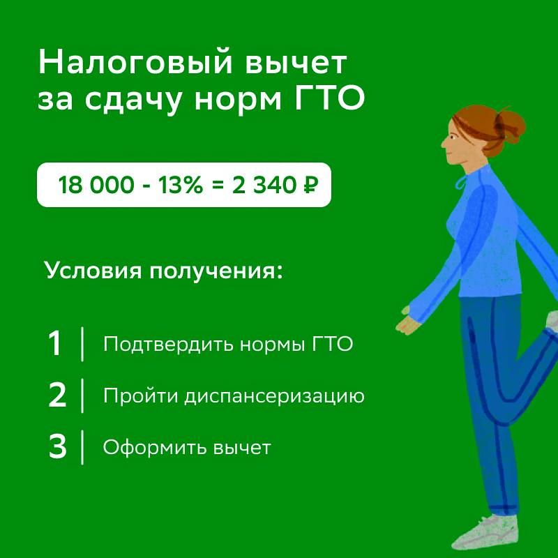 Право на вычет не зависит от возраста, уровней сложности пройденного норматива и полученного знака отличия - золотого, серебряного или бронзового.